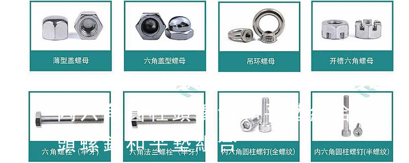 六角螺母 Hexagon nuts 方螺母-C Square nuts 六角頭螺釘 Hexagon screws 六角頭圓柱端 緊定螺釘 Hexagon set screws with full dog point 薄型方螺母-B Square nuts without bevel (pressed nuts)六角頭木螺釘 Hexgon hea