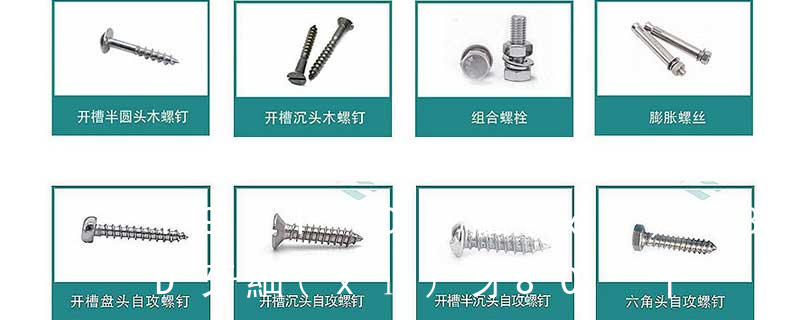 (鐵板牙自攻螺絲) B-2: Plastic Tapping Screw. (塑膠用,自攻螺絲) C: Wooden Screw : 木工螺絲 D: Drywall Screw :水泥墻螺絲 E: Self Drilling Screws鉆尾螺絲(不銹鋼鉆尾螺絲,復(fù)合材料鉆尾螺絲) F:膨脹螺絲,四片膨脹螺絲又