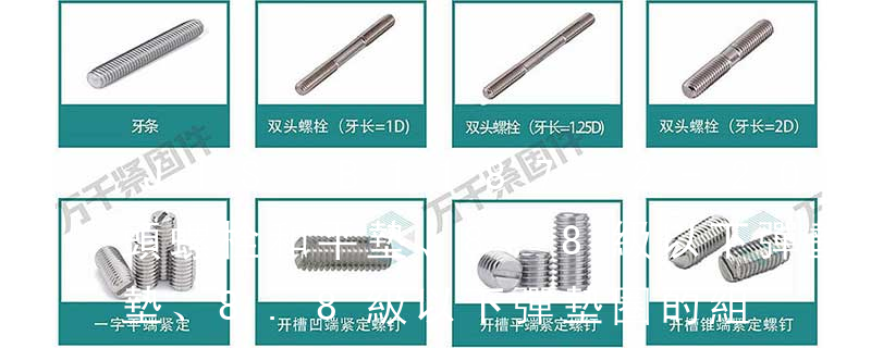 GB/T 9074.17-1988 六角頭螺栓和彈簧墊圈及平墊圈組合件;規(guī)定了螺紋規(guī)格為M3~M12的六角頭螺栓、彈簧墊圈和平墊圈組合件。并沒有對材質(zhì)做出規(guī)定,針對使用部位及性能要求的不同可以查閱GB/T 3098 緊固件機(jī)械性能 的系列 即當(dāng)已知螺栓的公稱直徑、性能等級以及螺紋摩擦系數(shù)、支承面摩擦系數(shù)時,可由附錄B表B1中分別查出屈服緊固軸力和屈服緊固扭矩的值。 僅以螺紋公稱直徑M10,性能等級8.8級的螺栓為例,給出了螺紋摩擦系數(shù)、支承面摩擦系數(shù)與屈服緊固軸力和屈服