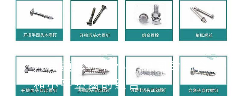名稱: 1.機螺釘 2.自攻螺釘 3.鉆尾螺釘 4.墻板釘 5.纖維板釘 6.木螺釘7.六角木螺釘 8.不脫出螺釘 9.組合螺釘 10.微型螺釘 11.家具螺釘 12.電子螺釘 頭型: 1.六角頭(hexagon head) 2.六角頭法蘭面(hexagon head with fla