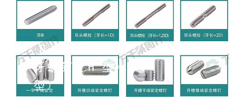 六角花形等;內(nèi)扳擰:一字槽、十字槽H型、十字槽Z型、十字槽F型、四方槽、復(fù)合槽、內(nèi)花鍵、內(nèi)六角花形、內(nèi)三角、內(nèi)六角、內(nèi)12角、離合器槽、六葉片型槽、高扭矩十字槽等。3、螺紋種類螺紋種類繁多,有自攻螺紋( 開槽半沉頭木螺釘 GB 101-86 DIN95; 4、六角頭木螺釘 GB 102-86 DIN571; 5、十字槽圓頭木螺釘 GB 950-86 DIN7996; 6、十字槽沉頭木螺釘 GB 951-86 DIN7997;