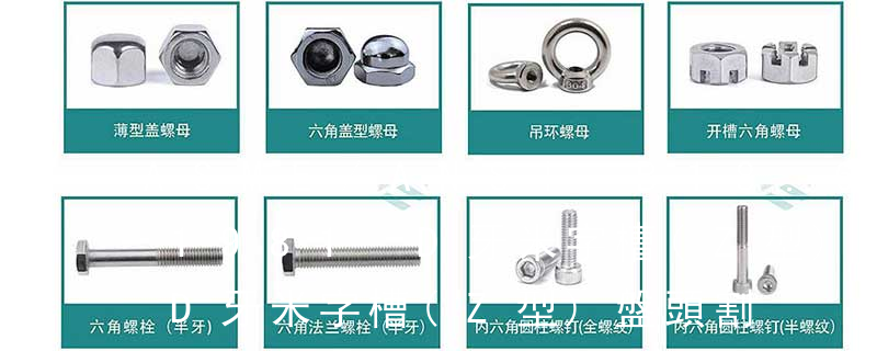 1.機螺釘 2.自攻螺釘 3.鉆尾螺釘 4.墻板釘 5.纖維板釘 6.木螺釘7.六角木螺釘 8.不脫出螺釘 9.組合螺釘 10.微型螺釘 11.家具螺釘 12.電子螺釘頭型:1.六角頭(hexagon head) 2.六角頭法蘭面(hexagon head with flange) 3.