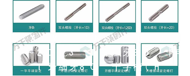 十字槽半沉頭自切自攻螺釘,六角頭自切自攻螺釘。3、自擠自攻螺釘(自攻鎖緊螺釘)自擠自攻螺釘的螺紋一般為機螺紋,很少采用自攻螺紋。在扳擰方式中,為確保高速自動裝配扳手的使用,一般不推薦采用開槽。自擠自攻螺釘的螺桿 六角花形等;內扳擰:一字槽、十字槽H型、十字槽Z型、十字槽F型、四方槽、復合槽、內花鍵、內六角花形、內三角、內六角、內12角、離合器槽、六葉片型槽、高扭矩十字槽等。3、螺紋種類螺紋種類繁多,有自攻螺紋(
