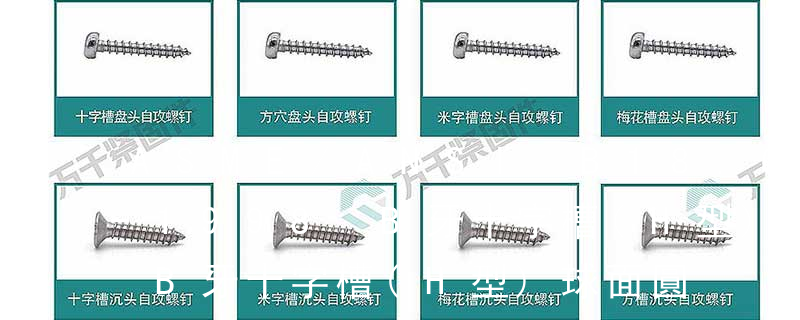 1、Flat:平頭 (鎖入后,頂部與工作件齊平)2、Oval:色拉頭、O頭、半沉頭 3、Round:圓頭 4、Pan:圓扁頭 5、Truss:大圓扁頭 6、Hex:六角頭 A-5:Finish Code/外觀處理。公制自攻螺絲 :于品名后方直接標示 Tapp 外扳擰:六角、六角法蘭面、六角凸緣、六角花形等;內扳擰:一字槽、十字槽H型(Phillips)、十字槽Z型(Pozidriv)、十字槽F型(Frearson)、四方槽(Scrulox)、復合槽、內花鍵、內六角花形(梅花槽)、內三角、內六角