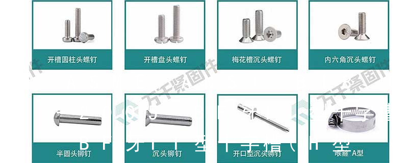 (鐵板牙自攻螺絲) B-2: Plastic Tapping Screw. (塑膠用,自攻螺絲) C: Wooden Screw : 木工螺絲 D: Drywall Screw :水泥墻螺絲 E: Self Drilling Screws鉆尾螺絲(不銹鋼鉆尾螺絲,復合材料鉆尾螺絲) F:膨脹螺絲,四片膨脹螺絲又